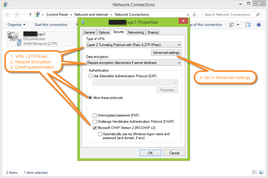 Following instruction have been perform using Windows 8.1 using Native VPN client.